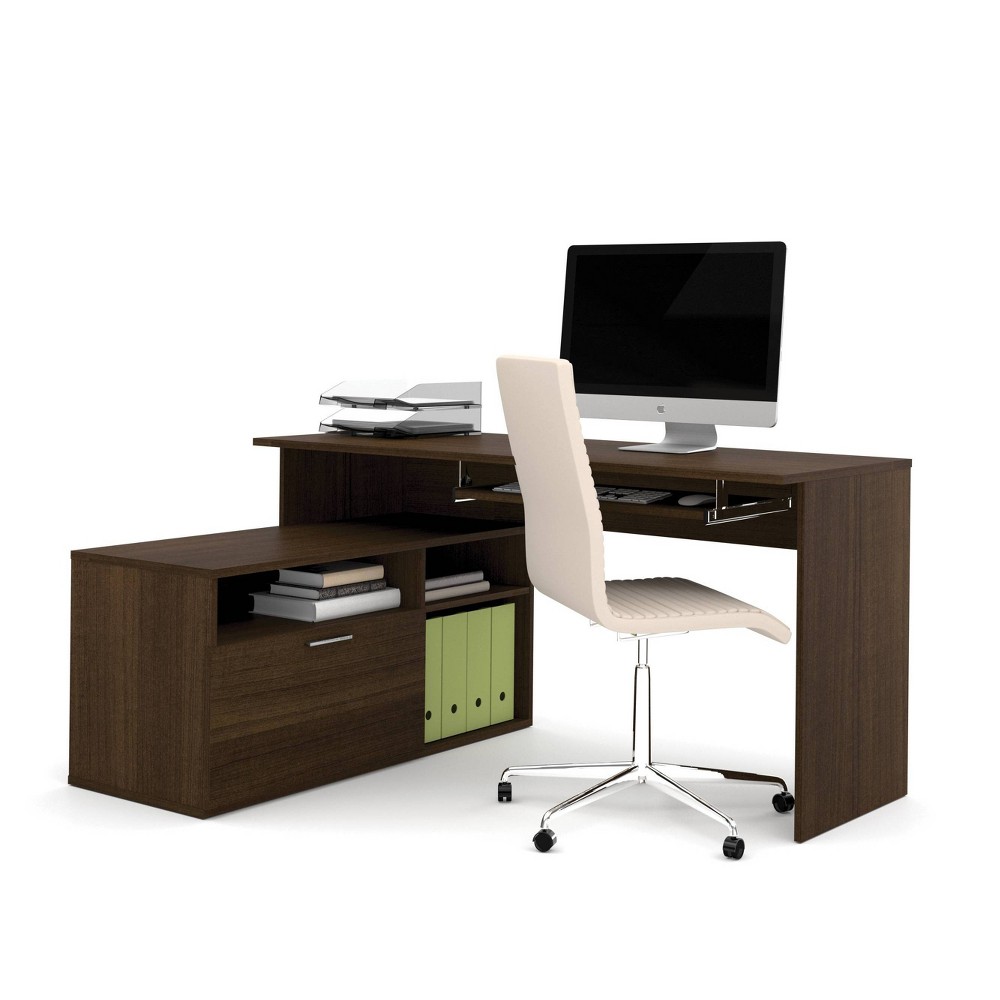 Shop for bestar hampton corner computer desk. Available in sand granite charcoal finish one utility drawer and one file drawer file drawer. Tuscany brown and black or sand granite and charcoal. The desk offers an upper shelf for the monitor, as well as space beneath this shelf for storage.