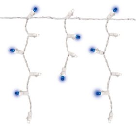 38+ Led Blue Twinkling Icicle Lights. Connect up to 3 sets of these indoor/outdoor lights to add holiday cheer around your house, yard, garage. These beautiful blue icicle lights will illuminate any room of the house with good tidings and cheer.